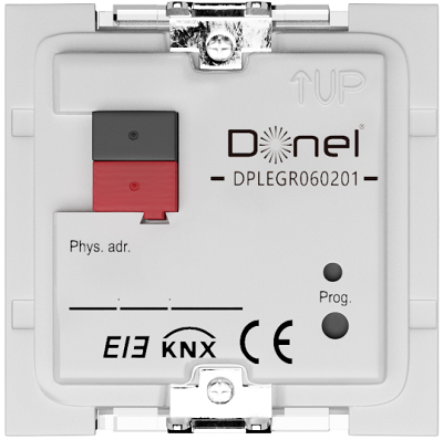 Donel DPLEGR060201 Donel сенсорный кнопочный модуль KNX, 3 группы, 55 мм, встроенный датчик температуры, функции KNX: переключение, диммер, RGB и RGBW, шторы, сцена, отправка значения, сдвиговый регистр, множественная операция, режим задержки; 8 групповых событий, 8 логических функций; Светодиодная индикация состояния RGB, Серый цвет, Cерия DKNX