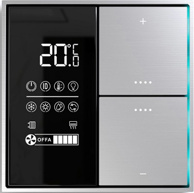 Donel DTS5392GS Donel Многофункциональный комнатный термостат KNX,ЖК-экран, встроенный датчик температуры, глянцевое серебро, Cерия DKNX
