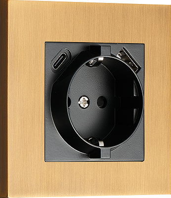 DT155MB Розетка Schuko с зарядным устройством USB A+C, с защитными шторками, латунь, серия N96 7466 шт.