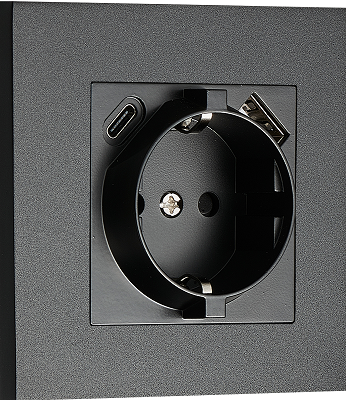 DT155BL Розетка Schuko с зарядным устройством USB A+C, с защитными шторками, черный, серия N96 7169 шт.