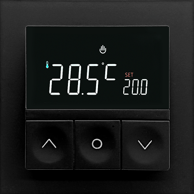 DTEF16BD Термостат с датчиком пола, программируемый, 16 A, 55*55 мм.черный, клавиши настройки