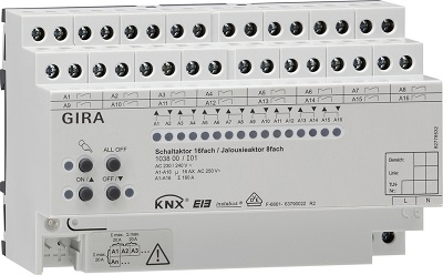 103800 Gira KNX Исполнительное устройство-реле 16-местн. 16 A / исполнительное устройство жалюзи 8-местн. 16 А с ручным управлением