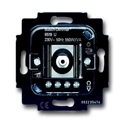 6519 U ABB Механизм светорегулятора для ламп накаливания и НВ галогенных ламп с электронным трансформатором, 40-550 Вт/ВА. 6519-0-0011