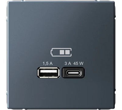 GAL000732 ARTGALLERY РОЗЕТКА 16А с 2 USB A+C, 5В/2,4А/3,0А, 2х5В/1,5А, механизм, ГРИФЕЛЬ 10909 шт.