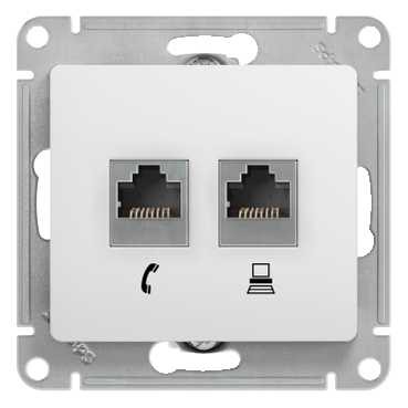 GSL000185 GLOSSA РОЗЕТКА двойная RJ11+RJ45, кат.5Е, механизм, БЕЛЫЙ 783 шт.