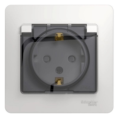 GSL000148 GLOSSA РОЗЕТКА с зазем. со шторк. с крышк., 16А, IP44, в сборе, быстрозажим. клем., БЕЛЫЙ 365 шт.