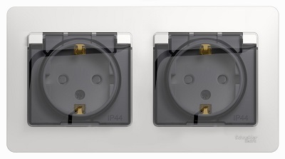 GSL000148 GLOSSA РОЗЕТКА с зазем. со шторк. с крышк., 16А, IP44, в сборе, быстрозажим. клем., БЕЛЫЙ 365 шт.