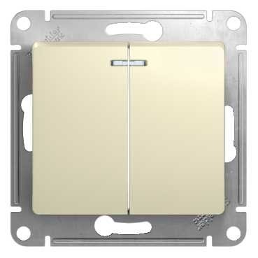 GSL000253 GLOSSA 2-клавишный ВЫКЛЮЧАТЕЛЬ с подсветкой, сх.5а, 10АХ, мех., быстрозажим. клем., БЕЖЕВЫЙ 351 шт.