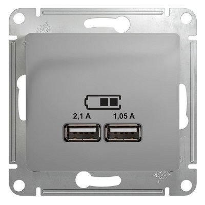 GSL000339 GLOSSA USB РОЗЕТКА А+С, 5В/2,4А, 2х5В/1,2 А, механизм, АЛЮМИНИЙ 5945 шт.