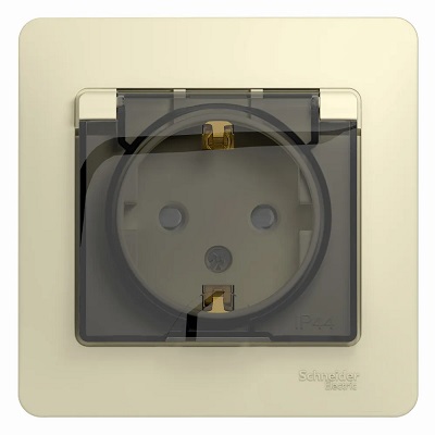 GSL000248 GLOSSA РОЗЕТКА с зазем. со шторк. с крышк., 16А, IP44, в сборе, быстрозажим. клем., БЕЖЕВЫЙ 365 шт.