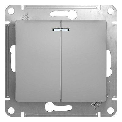 GSL000353 GLOSSA 2-клавишный ВЫКЛЮЧАТЕЛЬ с подсветкой, сх.5а, 10АХ, механизм, АЛЮМИНИЙ 531 шт.