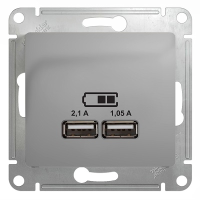 GSL000333 GLOSSA USB РОЗЕТКА A+A, 5В/2,1 А, 2х5В/1,05 А, механизм, АЛЮМИНИЙ 3623 шт.