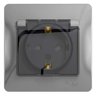GSL000348 GLOSSA РОЗЕТКА с заземлением со шторками с крышкой, 16А, IP44, в сборе, АЛЮМИНИЙ