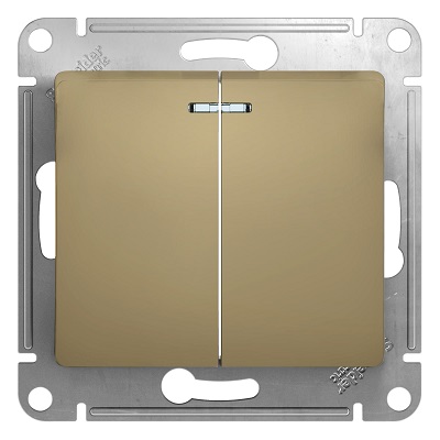 GSL000453 GLOSSA 2-клавишный ВЫКЛЮЧАТЕЛЬ с подсветкой, сх.5а, 10АХ, механизм, ТИТАН