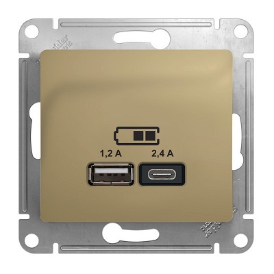 GSL000439 GLOSSA USB РОЗЕТКА А+С, 5В/2,4А, 2х5В/1,2 А, механизм, ТИТАН 5945 шт.