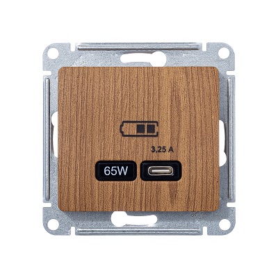 GSL000527 GLOSSA USB РОЗЕТКА тип-C 65Вт высокоскор.заряд. QC, PD, механизм, ДЕРЕВО ДУБ 6273 шт.