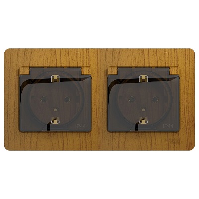 GSL000547 GLOSSA РОЗЕТКА двойная с заземлением, со шторками, в сборе, IP44, ДУБ 1077 шт.