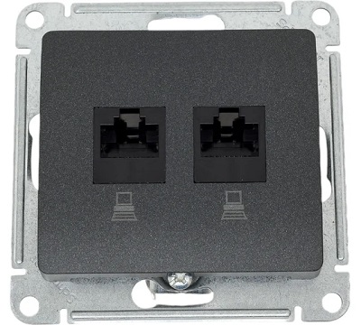 GSL000785KK GLOSSA РОЗЕТКА двойная компьютерная RJ45+RJ45, кат.5Е, механизм, АНТРАЦИТ 1401 шт.