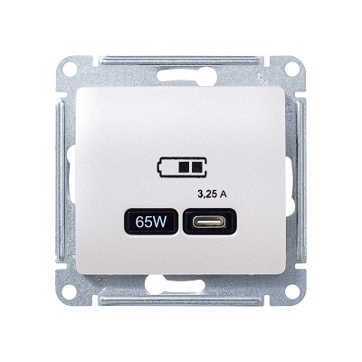 GSL000927 GLOSSA USB РОЗЕТКА тип-C 65Вт высокоскор.заряд. QC, PD, механизм, МОЛОЧНЫЙ 4810 шт.
