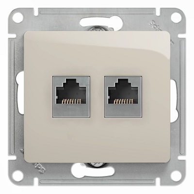 GSL000985 GLOSSA РОЗЕТКА двойная RJ11+RJ45, кат.5Е,механизм, МОЛОЧНЫЙ 772 шт.