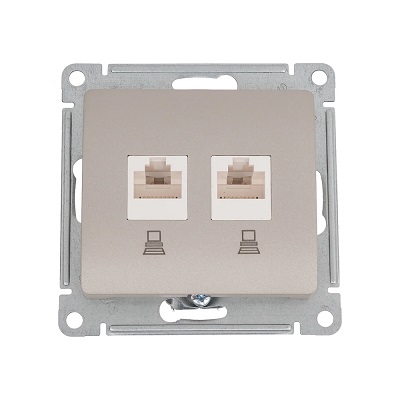 GSL001285KK GLOSSA РОЗЕТКА двойная компьютерная RJ45+RJ45, кат.5Е, механизм, ПЛАТИНА 1401 шт.