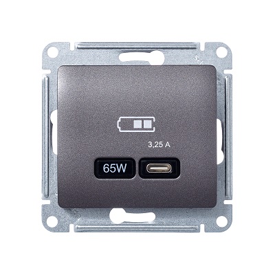 GSL001327 GLOSSA USB РОЗЕТКА тип-C 65Вт высокоскор.заряд. QC, PD, механизм, ГРАФИТ 6273 шт.