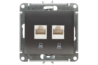 GSL001385KK GLOSSA РОЗЕТКА двойная компьютерная RJ45+RJ45, кат.5Е, механизм, ГРАФИТ 1401 шт.