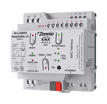 ZPRHPV2 Zennio ZPRHPV2 ALLinBOX Hospitality v2 Многофункциональное устройство с блоком питания KNX, интерфейсом KNX-IP, контроллером фанкойла для двухтрубного блока и 6 аналогово-цифровыми входами