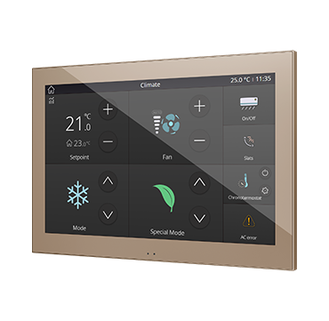 ZVIZ100C Zennio ZVIZ100C Емкостная сенсорная панель с 3,5-дюймовым дисплеем и датчиком влажности Z100, цвет: шампань