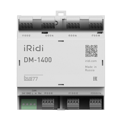 iRidium DM-1400 Модуль позволяет собирать данные с различных датчиков и устройств - 14 входов для подключения сухих контактов, датчиков различных типов - Тип входа выбирается перемычкой для минимизации ошибок настройки