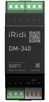 iRidium DM-340 Модуль позволяет пропорционально управлять различными устройствами - Управление электроклапанами теплого пола - Управление радиаторами отопления - Управление аналоговыми диммерами - Поддержка сценариев - Получение данных с датчиков температуры - Получение данных с сухих контактов