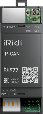 iRidium IP-CAN IP-CAN — это интерфейс доступа к физической линии шины Bus77 из локальной IP-сети. Предназначен для сквозной передачи информации между интерфейсом шины Bus77 и Ethernet. Не требует лицензии для работы. Выступает сервером времени для устройств Bus77 (синхронизирует дату и время на устройствах шины). Для подключения к шине через IP-CAN может быть использовано ПО Bus77 Home, iRidi Studio, i3 Pro, отладочное ПО, а также серверы iRidi. Не хранит централизованную логику: сценарии и расписания и логика взаимодействия хранятся и выполняются непосредственно на устройствах Bus77. Не обеспечивает возможность подключения к шине Bus77 через интернет. Для этой цели используйте IP-Hub. Не позволяет настроить голосовое управление оборудованием Bus77. Для этой цели используйте IP-Hub или Bus77 Home Server.