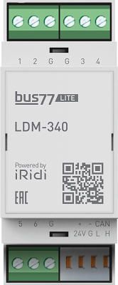 iRidium LDM-340 Модуль позволяет пропорционально управлять различными устройствами - Управление электроклапанами теплого пола - Управление радиаторами отопления - Управление аналоговыми диммерами - Поддержка сценариев - Получение данных с датчиков температуры - Получение данных с сухих контактов