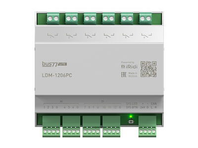 iRidium LDM-1206PC Предназначен для управления: - группами освещения - лампами накаливания и галогенными лампами, светодиодными; - розеточными и прочим высоконагруженными группами, без применения промежуточных реле и пускателей; - шторами, жалюзи, электромоторами; - электрическими и водяными контурами отопления в связке с сетевыми датчиками температуры.